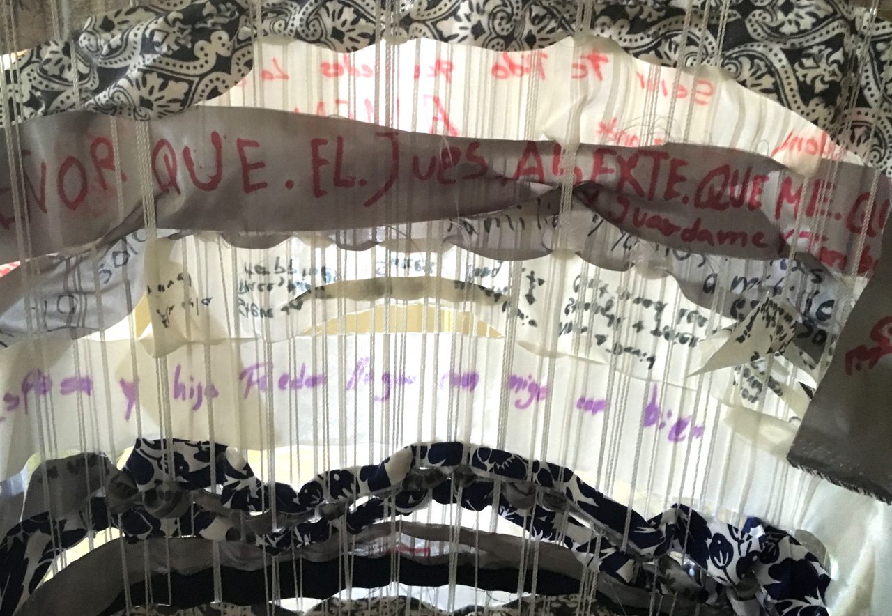 The other beautiful thing about this image of the loom is that, if you get up close and look at it, you’ll notice that several of the most recent prayers, woven in at the top, have been written in Spanish. These are prayers written by some of the dozens of refugees we have hosted so far. This loom began as a prayer practice rooted in our worship and love of God and grew into a part of our ministry, bearing fruits of love and prayer and solidarity with our neighbors.