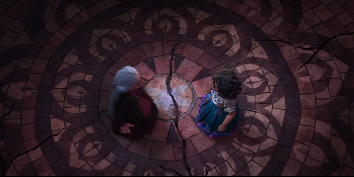 Mirabel discovers that Bruno never actually left. In fact, he has been hiding in the house this whole time and secretly patching up the cracks in the walls – cracks that had been showing up ever since he was rejected by the family years before. The division in the family – first with Bruno, and now with Mirabel, is literally tearing their house apart.