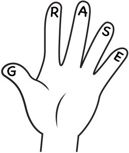 - R (index finger): Remember good things that God has done – we remind ourselves of God’s faithfulness and offer thanks and praise