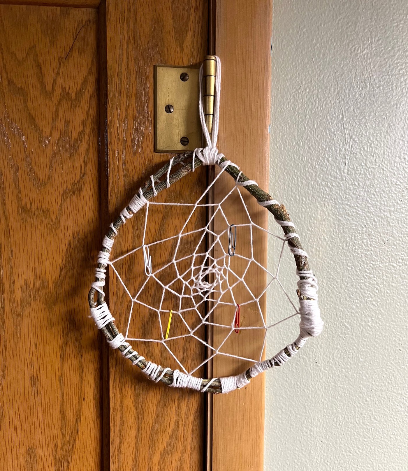 I don’t remember who taught me how to make a dreamcatcher or when I learned. Despite their complex appearance, they are not actually all that difficult to make — all it takes is a hoop, and a single, unbroken length of string. The string forms the pattern by wrapping in certain ways and looping back on itself, ever spiraling inward toward the center, yet always remaining the same string.