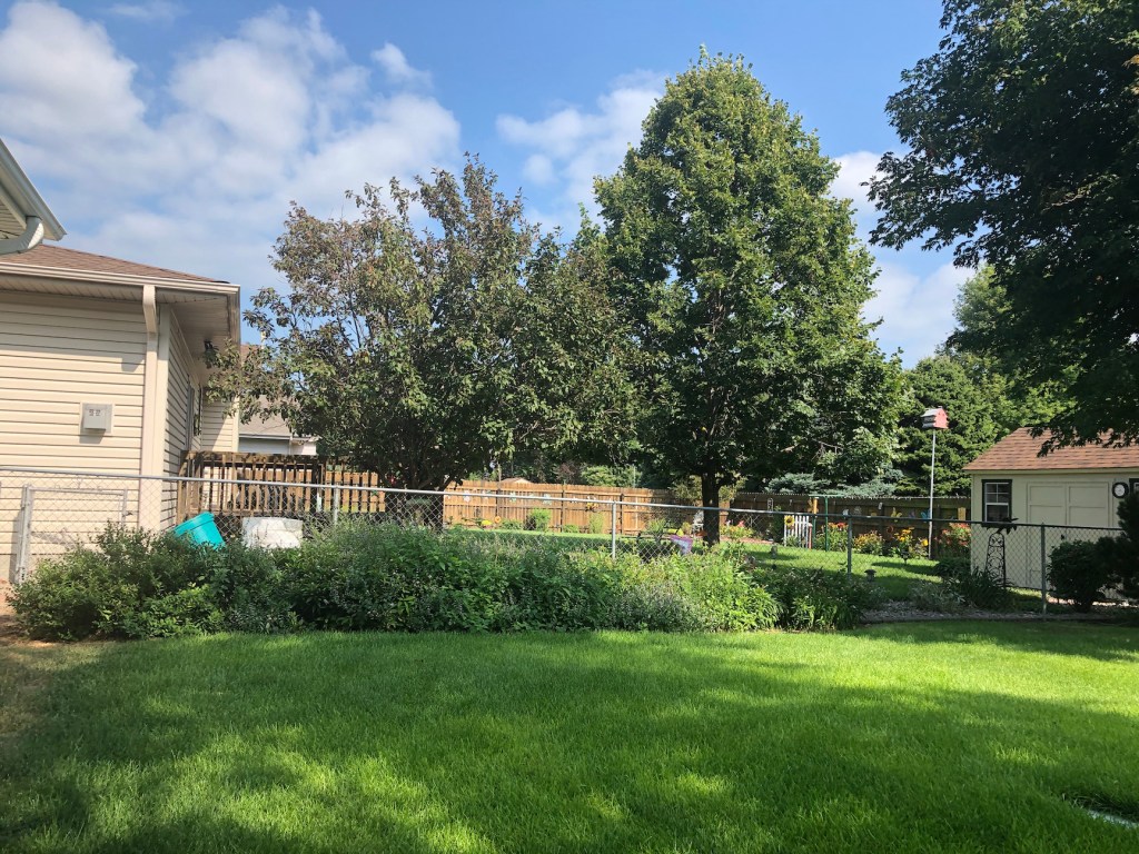 But probably my favorite part about the house was actually the backyard. It was a nice, big backyard, fenced in all around, with a clothesline and a little concrete patio. There were all kinds of plants back there – trees and flowers and little shrubs and grasses – and they had all been planted by someone who clearly… had no idea what they were doing.